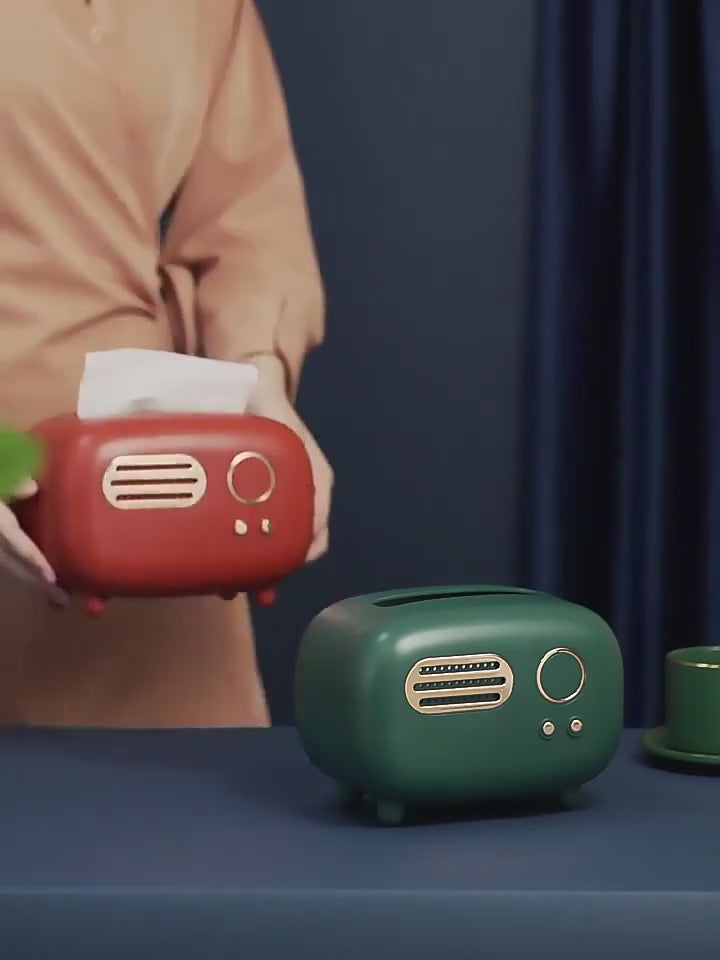 Add a touch of retro charm to your space. This radio-inspired tissue holder blends style and utility, making everyday essentials look effortlessly classy.